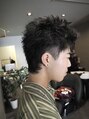 2ブロックで長短をつけた個性派スタイル。両端の前髪を下ろして小顔効果&こなれた感じに/トップが伸びてきたらあえて立たさず柔らかい雰囲気にしたりパーマでイメチェンがオススメです。