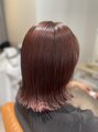 暖かみのあるこれからの季節にピッタリなpinkカラーカットは重めのぱっつんに。お仕上げは外はね