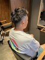 0.8ミリからのツーブロックのフェードスタイル。ハイライトはブリーチのみで抜きっぱなしでオトコっぽく。
