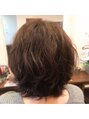 丸みあるスタイルで、女性らしさもあるウルフカットにしています。オゾンパーマをかけているので、手ぐしでラクにスタイルがまとまります!