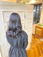ブリーチ無し透明感カラーです。ボンドカラー8トーンライラック、6トーンインディゴを調合しました。