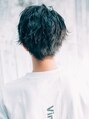 耳周り、バックをすっきりと短くしたさわやかなツーブロックのアップバングスタイルです。前髪は、黒目の上からしっかりとあげることでバランスの良いスタイルに。全体の毛先は無造作に動かして毛束感をプラスしています。