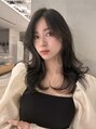 ★顔まわりレイヤーセンターパートブリーチなしアッシュ韓国風