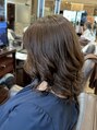 ハイライト履歴という超高難易度のお客様。ハイダメージ毛は髪の毛へのリスクが高いので基本的にオススメはしませんがコテで巻いたようなカールでヘアスタイルが格段に可愛くなりました!乾かしてオイルやバームなどを毛先につけるだけで艶感が出て可愛い♪