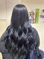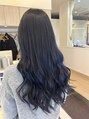 ブリーチベースの髪に濃いめのネイビーが可愛い透け感カラー♪ネイビーだけでなくパープルも混ぜているので光の当たり方によって青っぽく見えたり少し紫ぽくみえたり、、、★強い光の当たらない室内だとブルーブラックぽい落ち着いた印象に◎