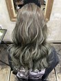 全体にブリーチでハイライトをいれて、濃いめのカーキベージュをオン◯レイヤーもしっかり入れてるので、コテで巻くとかなり立体感のでるスタイルです!