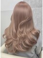 ハイライトに淡いピンクがかわいいウェーブ