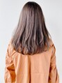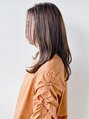 面長タイプでセンター分けをすると縦のラインが強調されがちですが前髪の毛先を再度に流し、顎下にボリュームラインを作ることで小顔に見えるシルエットを作っています。カラーは赤みをなくした10トーンのショコラベージュ。