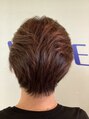ショートカット後ろに流れるようにフロントからレイヤーを入れ後頭部をふっくらさせ、襟足を軽やかに見えるようカットしました。カラーはベージュ系のカラーを使い少し明るくしました。