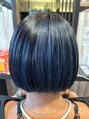 前下がりボブ×ハイライト ブルー/ネイビー 髪質改善Tr