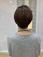 シンプルなボブスタイル。横から見るとちょっぴり前上がりになっているところがポイント。1人1人の個性にあったボブスタイルをご提供します。カラーはパープルブラックで、光に当たるとオシャレ感がでます。