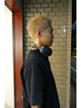 ボウズっぽいけど少し長さを残したショートスタイル。カラーはブリーチ一回でブロンドヘアにしました。スタイリングはジェルで仕上げてます◎