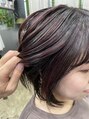 表面だけケアブリーチをして、濃いめのピンクをいれた、アンブレラカラーです!カットはミニボブで、乾かすだけでうちにおさまる簡単なスタイル!仕上げはオイルをさらっとつけるだけでオッケーなスタイルです!