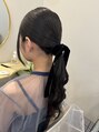 【茶屋町ヘアセット】タイトなローポニーテールにベロアリボンをつけて大人可愛いStyleに♪とっても人気なStyleです!!お呼ばれにもおすすめです!!!