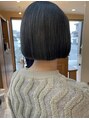 ブリーチ2回以上必須グリーンカラー♪ぷつっとボブで丸みのあるスタイルに◎