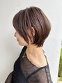大人可愛いショートレイヤースタイルショコラブラウンカラーで、透明感あるふんわり感と柔らかさをプラス。ナチュラルタイプのワックスを揉み込むだけの簡単スタイリング。