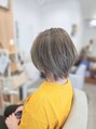 細かくハイライトを入れて立体感を作ってから、透明感のあるヘーゼルカラーをオンしました。カットは質感と量感をしっかりと入れて仕上げました。アイロンで外跳ねにして表面を整えてスタイリングオイルをつけて仕上げました。