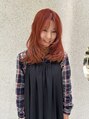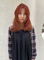 ブリーチ1回でつくる赤系カラー。パキッとさせてちょっとエッジのきいたスタイルに!顔周りレイヤーを入れてランダムに巻いて動きを◎