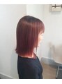 大人なマゼンダレッドカラー、切りっぱなしストレート♪色味を出すのに少しライトナーハイライトとイヤリング入れてアクセントに☆根元は白髪染めでしっかり白髪カバー。白髪があってもオシャレにしましょ♪ご相談お待ちしております。9/47 10/5 3剤