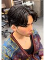 トップ短めにレイヤーを沢山いれて束感のあるフェザー風ニュアンスパーマに