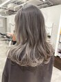 エアータッチバレイヤージュ。ハイライトのような筋感と毛先にかけて明るくなるグラデーションにしております。色みはアッシュグレージュ。黄色み、赤みを抑えグレーの色みに透明感を出しております!