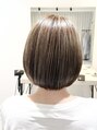 極細に入ったハイライトが入った動きのあるボブスタイル。プレックス剤入りのカラーでオンカラーした色落ち後も綺麗なスタイルです◎