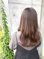 カットはえりあしスッキリひし形ショートです。毛先を軽めにして小顔効果♪うしろの丸みもあり可愛らしいスタイルです。カラーは明るめのピンクブラウンで染めています。