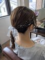 ミディアムレングスの方でも網みおろしローポニーできます◎銀箔をつけて、オシャレに◎
