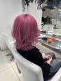 20代30代ダブルカラーシアーピンクミディアムウルフ外ハネ