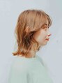 肩ぐらいのボブベース。顔まわりとトップにレイヤーを入れて軽さと動きが出るようにしています。バングもシースルーで抜け感を出しています。カラーは透明感のあるベージュに。ハイライトで立体感を出していくのもおすすめです!
