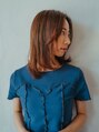 鎖骨くらいの長さで切ったミディアムスタイルです。前髪は少し長めで鼻と口の間くらいの長さで流れやすいように軽めに。顔まわりとトップにレイヤーが入っているのでシンプルですが動きのあるスタイルになっています。スタイル名