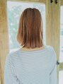 肩にギリギリ着くくらいの長さのロングボブで、内巻きだけで作るナチュラルなスタイルになっています。前髪も少し厚みがあるので、全体的に重くなりやすいですが顔周りだけ外に流すことでバランスをとっています。