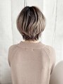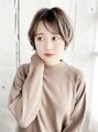 ふんわりしたシルエットに毛先のカールが可愛いアレンジショートスタイル です。透け感のあるカラーが全体により透明感を出します。