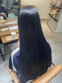 ブリーチ無し ブルーブラック 暗髪 高濃度水素カラー