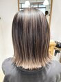 バレイヤージュ/切りっぱなしボブ/ホワイトベージュ