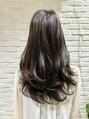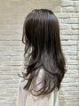 毛先全体に動きがあるロングウルフ系のヘアスタイル中間や顔周りに丸みのある曲線と毛先の抜け感のメリハリが特徴のロングヘア。ヘアカラーは透明感を作りながら、深みのあるブルーアッシュで凛としたスタイリッシュな雰囲気をプラス