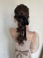 結婚式お呼ばれヘアリボンアレンジ編みおろしスタイル