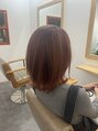 ブリーチ回数は2回。通常であれば1回で十分ですが、今回のお客様のベースカラーの修正が必要だった為、2回ブリーチをしました。キレイに修正できたので、イイ感じに仕上がりました。