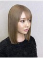 ブリーチ後にベージュ系カラー♪シースルーバングと鎖骨の長さに設定したミディアムボブスタイルです。