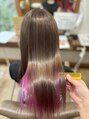 インナーカラーはアメリカンチェリーでビビットなピンクにして全体も明るめにしていきました!髪質改善でツルツルに♪