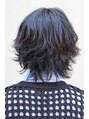 ミディアムウルフに縦落ちのスパイラルパーマをかけたスタイル!顔にかかってくるウェーブが大人の色気を出します。