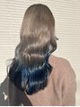 見えにくいですがインナーカラーにブラック、表面にはシルバーからブルーのグラデーションの組み合わせカラー!どっちもやりたい方におすすめ。ブリーチ必須。ブリーチの回数は髪質によって異なりますのでご相談ください。