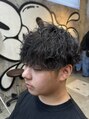 (上野/メンズカット/フェード/波巻きパーマ/眉毛/センターパート/ツイストスパイラルパーマ)