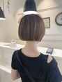 襟足ギリギリのラインでタイトにカットする事で、首を長く見せて頭を小さく見せるボブです。