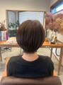 センターパートのショート。大人っぽい印象ですが丸みを出すトップは長め設定なので可愛さもあるショート。