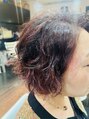 パーマを緩めにかけ、カラーは全体的にメッシュをいれピンク系をのへましま