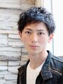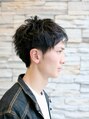 ツイストピンパーマをランダムにかけたアップバングスタイル。躍動感たっぷりヘアの爽やかヘア。黒髪でも重くならないのがポイント。パーマをかけるのが初めての人にもチャレンジしやすいヘアですよ。