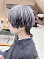 シルバーカラーツーブロックマッシュショート ブリーチカラー