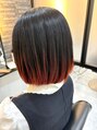 毛先に色の変化をつける裾カラーの入れた伸ばしかけのボブスタイルです。表面部分のみ少し高い位置から色を入れることで、バレイヤージュのような質感が出ます。