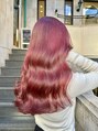 韓国デザインタンバルボブ重めだけど、レイヤーと広めのサイドバングを組み合わせて、スタイリングで軽く見える大人可愛いスタイルです。ブリーチデザインカラーピンク×ブラウン相性のいいトレンドカラーをミックスさせてます!透明感抜群でおすすめです。